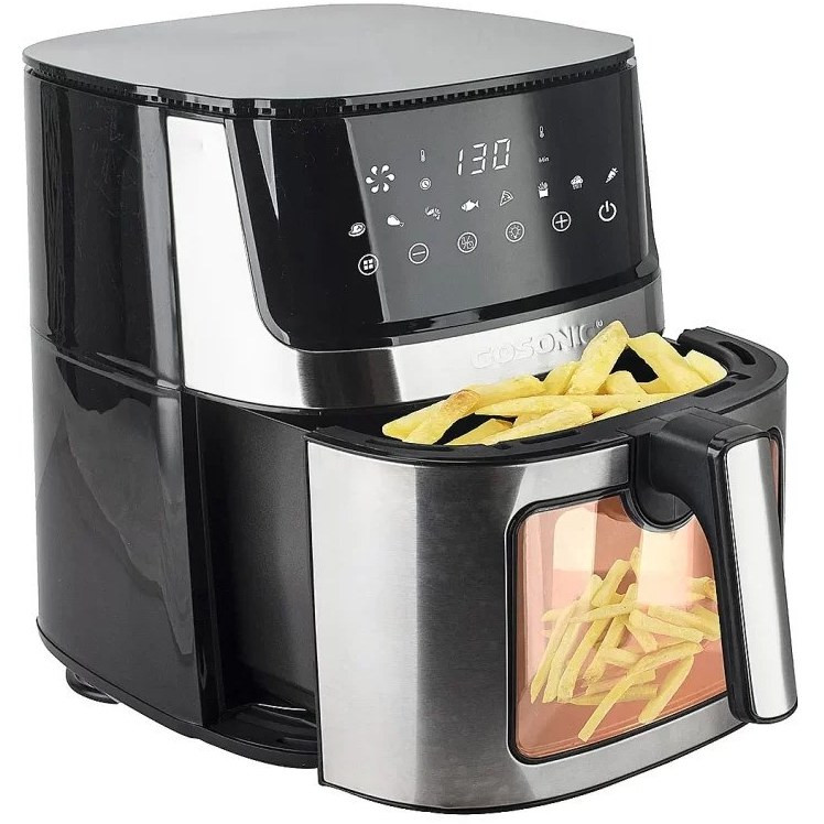 سرخ کن گوسونیک مدل GAF-568 دستگاهی مدرن بوده که گوسونیک اخیرا به بازار عرضه کرده است که دارای نمایشگر LCD است که میتوانید دما را تنظیم کنید. این دستگاه بدنهای مشکی دارد که زیبایی خیره کننده ای به آن بخشیده است. همچنین دستگیره عایق اکه میتوانید استفاده ای آسان با کمک آن داشته باشید. 8 برنامه از پیش تعیین شده به صورت لمسی در قسمت بالای دستگاه قرار داشته که میتوانید متناسب با نیازتان آنها را فعال کنید.