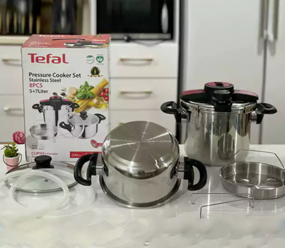 زودپزروگازی دوقلو تفال کلیپسی8پارچه 5+7 tefal