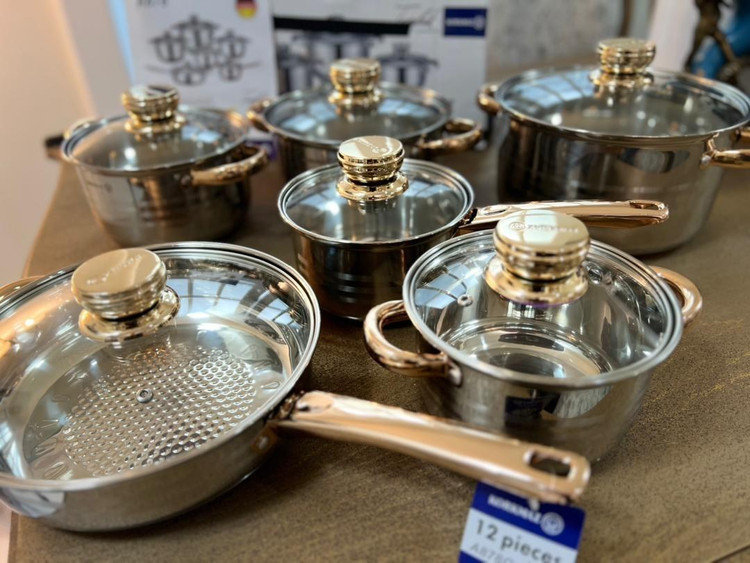 ساخت ترکیه - استیل کروم نیکل ۱۰/۱۸ -۱۲ پارچه -درب اختصاصی برای هر ظرف