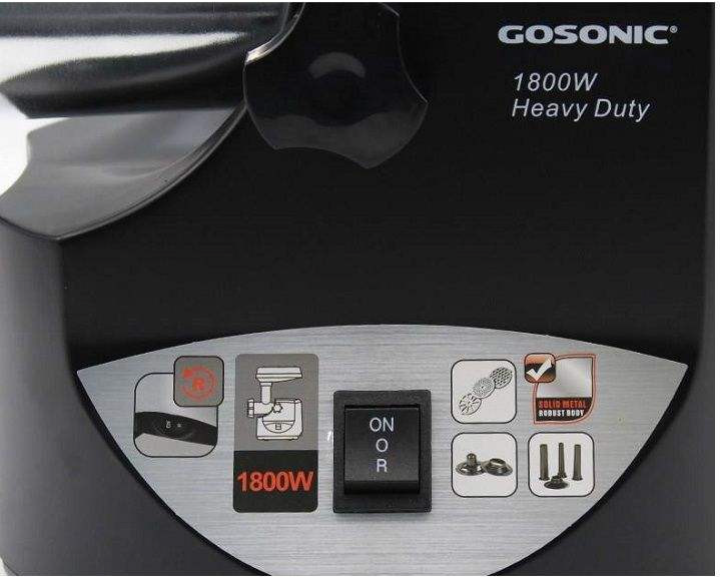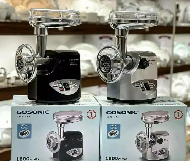 چرخ گوشت گوسونیک مدل GMG-744 از سری محصولات با کیفیت منزل و آشپزخانه می باشد.توان مصرفی ۱۸۰۰ وات می باشد.جنس بدنه ترکیب پلاستیک و آلومینیوم است.دکمه خاموش و روشن و دکمه دور معکوس برای این محصول درنظر گرفته شده است.دارای یک سینی استیل محافظ در برابر گرد و غبار مجهز است وجنس سری چرخ کننده فلزی می باشد.این محصول با ۳ مدل تیغه برش معمولی، سری سوسیس ساز و سری ریز عرضه می شود.و دارای دستهی فشار دهنده جهت امنیت هنگام کار با آن می باشد.