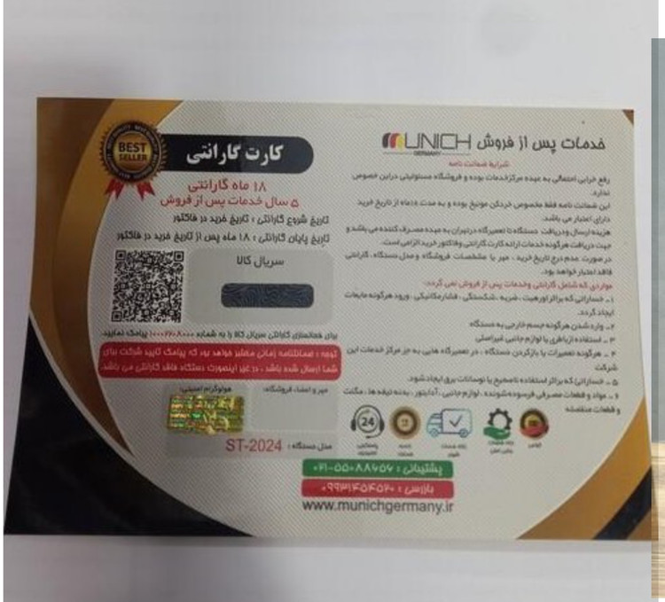 💥دفترچه فارسی و هولوگرام اصلی کالا