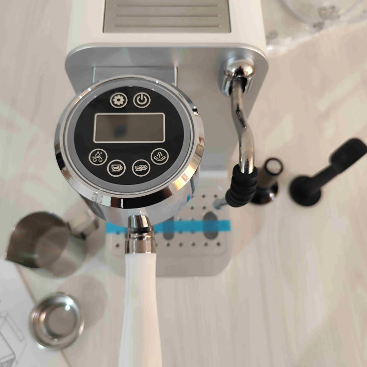 ساخت کشور چین عملکرد نیمه صنعتی توان 1350Wفشار بخار 19 بارجنس بدنه استیل و پلاستیکپرتاقیلتر و بسکت غیر تحت فشارنمایشگر دیجیتالی و پنل تاچدارای پیچر(شیرجوش) ،تمپز آهنی و پیمانه پرتافیلتر سایز 58قابلیت سرو سینگل شات و دبل شاتدارای سیستم کاپوچینوساز دستی مخزن آب 1.4 لیتر