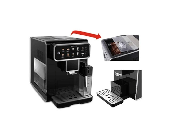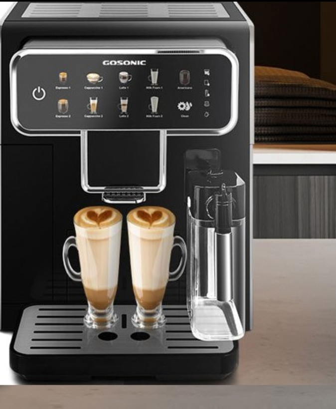 شرکت گوسونیک که از برند های ترکیه ای بوده در جدیدترین تولیدات خود در دسته بندی اسپرسو ساز اقدام به عرضه و معرفی اسپرسو ساز تمام اتوماتیک گوسونیک مدل GEM-882 نموده است. جنس بدنه در نظر گرفته شده برای این اسپرسو ساز اتوماتیک از پلاستیک ABS استفاده شده است. کنترل پنل طراحی شده نیز از نوع لمسی بوده که با المان های قرار داده شده بر روی این پنل می توانید بسیار سریع و ساده به نوع نوشیدنی مورد نظر خود دست یابید. توان مصرفی در نظر گرفته شده برای اسپرسو ساز گوسونیک مدل GEM-882 دارای 1350 می باشد. این توان مصرفی به لطف داشتن یک پمپ ایتالیایی ULKA می توان فشار بخار مورد نظر و ایده ال 15 بار داشته باشد. ظرفیت مخزن دانه های قهوه در این دستگاه 220 گرم است و دستگاه دانه ها را اتوماتیک خورد کرده و برای تهیه قهوه شما پودر قهوه را اتوماتیک تهیه میکند. مخزن آب اصلی این دستگاه دارای ظرفیت 1.5 لیتر با قابلیت جداسازی و تولید 10 تا 12 فنجان قهوه می باشد. مخزن شیر جداگانه نیز با ظرفیت 300 میلی لیتر با قابلیت جداسازی از بدنه اصلی و تولید خودکار کف شیر دارد. از قابلیت های اصلی این اسپرسو ساز می تواند به تهیه انواع کاپوچینو ، اسپرسو ، کافه لاته ، آمریکانو ، ماکیاتو ، کف شیر ، آب جوش و سایر مشتقات قهوه را تهیه کنید. از دیگر قابلیت های این محصول دارا بودن گرم کن فنجان ، سینی چکه گیر ، سیستم خودکار خود تمیز کننده می باشد