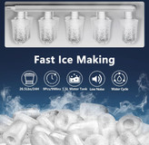 یخ ساز کمبو دارای ویژگی های زیر میباشد: یخ سازی سریع: میز یخ ساز KUMIO ۹ یخ گلوله ای شکل را تنها در ۶-۹ دقیقه می سازد، گلوله های یخ نسبتا ضخیم تر هستند و ماندگاری بیشتری دارند. مخزن را با ۱.۵ لیتر آب پر کنید تا ۱۲ کیلوگرم یخ در ۲۴ ساعت ساخته شود. یخ تازه را در کمترین زمان به شما می دهد ،کنترل هوشمند تک لمسی: کار با آن بسیار آسان است، فقط آب را به یخ ساز اضافه کنید و دکمه را فشار دهید تا شروع شود. هنگامی که آب کافی وجود ندارد یا سبد یخ پر است، چراغ نشانگر روشن می شود. یک درب بزرگ شفاف به شما امکان می دهد پیشرفت یخ سازی را نظارت کنید. همراه با یک سبد یخ قابل جابجایی و قاشق یخ برای انتقال آسان یخ به نوشیدنی یا سطل یخ شما عملکردهای بی صدا و چندگانه: یخ ساز روی میز KUMIO مجهز به کمپرسور با راندمان بالا، نه تنها می تواند به شما در صرفه جویی در انرژی کمک کند، بلکه محیطی آرام را نیز تضمین می کند. ایده آل برای نوشیدنی ها، اسموتی ها،غذا، تازگی و اقدامات کمک های اولیه تمیز کردن آسان و طراحی فشرده: محفظه بادوام ABS صاف است و به راحتی تمیز می شود. مخزن آب مجهز به سیستم تصفیه آب برای لذت بردن از یخ ترد و تمیز است. در پایین یک دهانه و دریچه تخلیه برای تخلیه آسان آب استفاده نشده وجود دارد. توجه: لطفاً قبل از استفاده از دستگاه یخ ساز برای اولین بار، ۲۴ ساعت در حالت عمودی قرار دهید Kumio ICM-۱۲۲۱ می تواند ۱۲ کیلوگرم در روز تولید کند، تنها در ۸ دقیقه یک بسته ۹ تایی تولید کرد. از آنجایی که یخ بسیار بزرگ و غلیظ است، مقدار کمی از آن بسیار زیاد است. چرخه آب و لایه فوم ضخیم شده، سیستم خنک کننده اگزوز حرارتی و کم صدا، طراحی جمع و جور و قابل حمل، پنل کنترل هوشمند و سیستم تصفیه آب، اسکوپ و سبد یخ قابل جابجایی و راهنمای کاربری میباشد .فوق العاده بی صدا و همه کاره یخ ساز میز دارای کمپرسور قدرتمند، کندانسور با کیفیت بالا و مبرد R۶۰۰a سازگار با محیط زیست با صدای کم، خنک کننده سریع و مصرف کم است. بهترین کیفیت یخ را در اختیار شما قرار می دهد تانیازهای مختلف شما را برآورده کند. یخ گلولهای گرد و صاف که به دست شما آسیب نمیزند، ماندگاری بیشتری دارد و به راحتی نمیچسبد، مناسب برای نوشیدنیها، اسموتیها، غذا، تازگی و اقدامات کمکهای اولیه.
