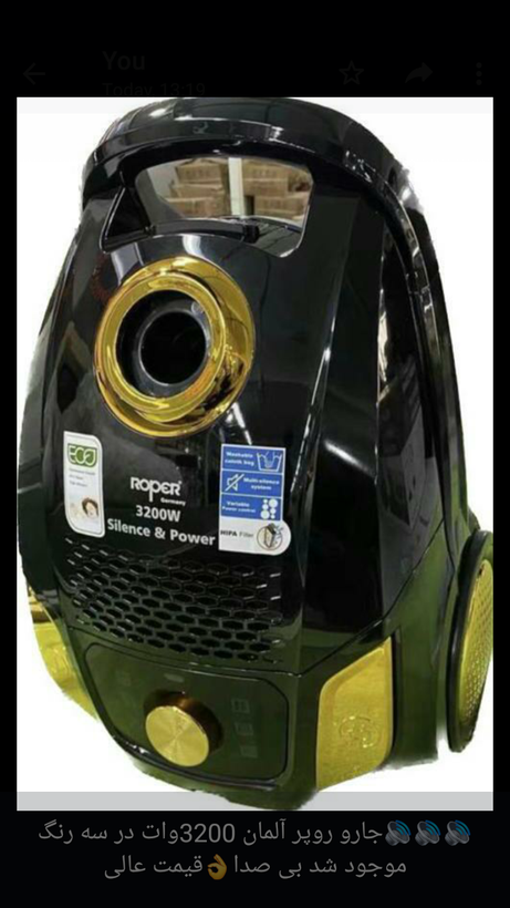 یکی از ضروری ترین وسایل برای هر خانه ای جاروبرقی بوده که انواع مختلفی از نظر ظاهر و کارایی به بازار عرضه شده است. اما انتخاب بهترین آنها کاری است پیچیده و در عین حال تخصصی. به این دلیل ما با معرفی محصولات اورجینال از برندهای خوشنام شما را در خریدی بی نقص یاری مینماییم. یکی از چاروبرقی های عرضه شده روپر آلمان بوده. که دارای توانی 3200 واتی بوده که قدرت بسیار مناسبی برای یک جاروبرقی خانگی میباشد