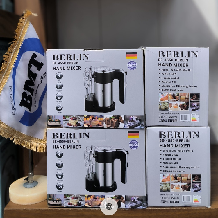 🔴با همزن دستی برلین، آشپزخانهات فقط یه آشپزخانه نیست، یه نمایش زیباییه! 🔴کوچک، شیک و همیشه آماده برای خوشمزهترین لحظهها. ✅جنس بدنه : استیل ✅توان مصرفی : 300 وات ✅طول سیم : 1 متر ✅تنوع سری : سری همزن و سری خمیرزن ✅پایه نگه دارنده : دارد ✅تنظیم سرعت : دارای 5 سطح سرعت ✅ سیم پیچی موتور : مسی 🔴تو هم این جلوه خاص رو به آشپزخونت اضافه کن!